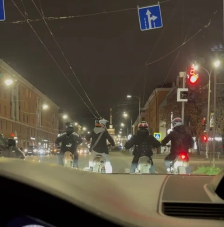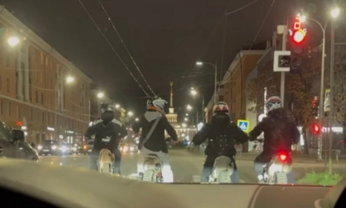 В минувшие выходные четверо подростков прокатились на питбайках по улицам Петрозаводска. На проспекте Ленина их запечатлел видеорегистратор горожанина, который передал запись сотрудникам ГАИ.